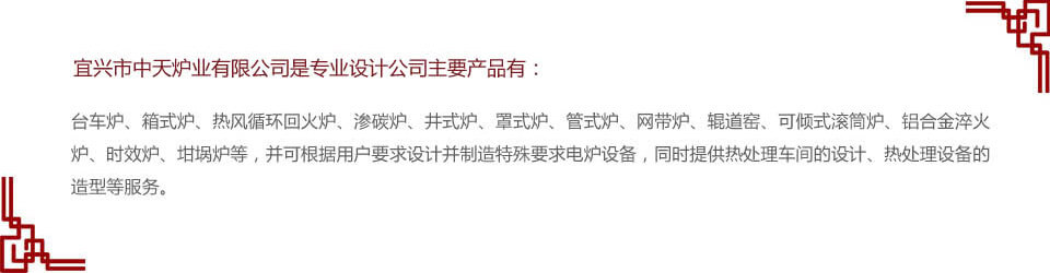 宜興市中天爐業(yè)有限公司是專(zhuān)業(yè)設(shè)計(jì)、制造各種工業(yè)電爐、淬火水槽等熱處理設(shè)備的公司。